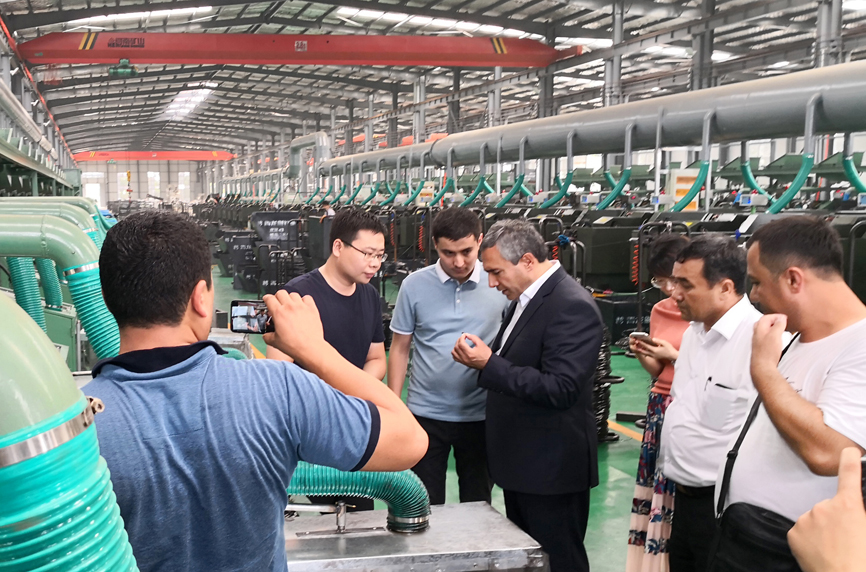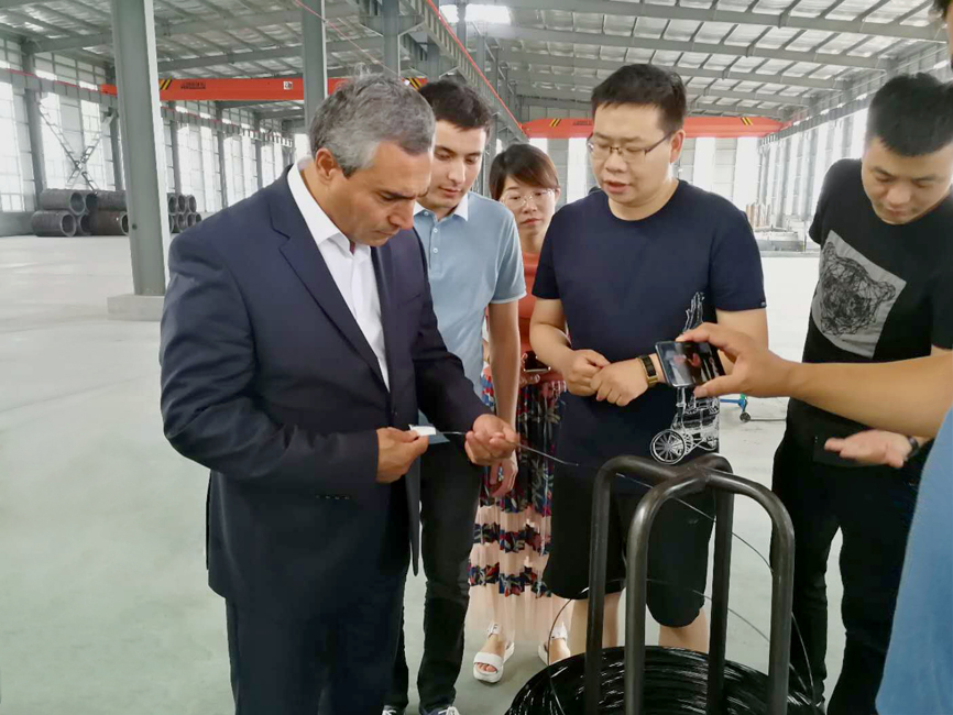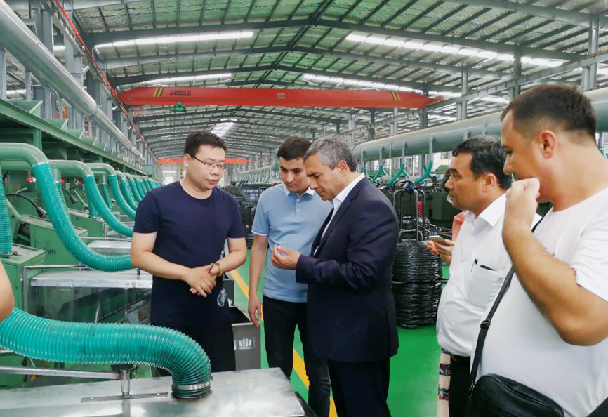7月14日下午,烏茲別克斯坦KOKAND CITY州長 Usmonov Maruf蒞臨青龍劍釘業經濟開發區公司。青龍劍釘業總經理馬群澤熱情接待了到訪的Usmonov Maruf先生及隨行人員,并陪同Usmonov Maruf先生到車間進行參觀考察。