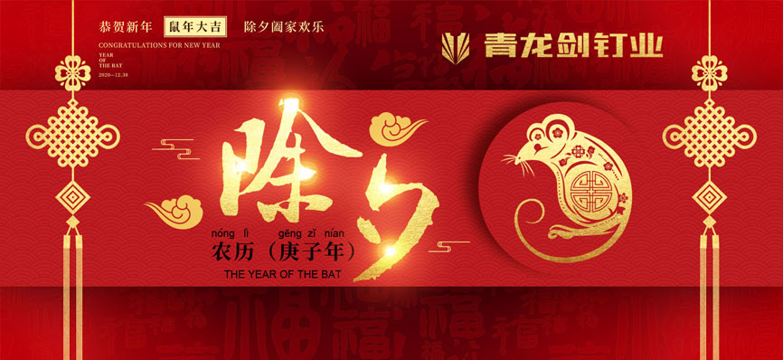 歲序常易,華章日新。當時光穿越年輪,邁向2020新春佳節,中華大地因納其盛世靈氣而芳澤毓秀,在這個充滿激情與期望的時刻,青龍劍釘業全體人員向所有關心關愛青龍劍公司發展的社會各界同仁、全國的經銷商和用戶朋友們致以親切的節日問候和誠摯的新春祝福!