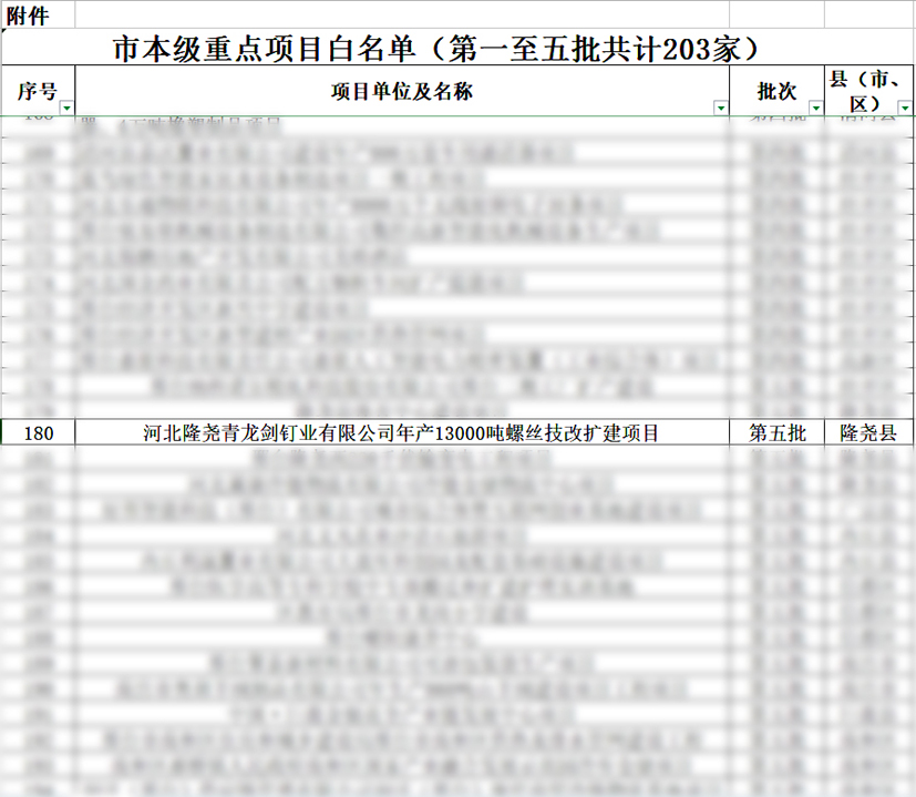 青龍劍釘業(yè)列入市本級(jí)重點(diǎn)項(xiàng)目“白名單”!