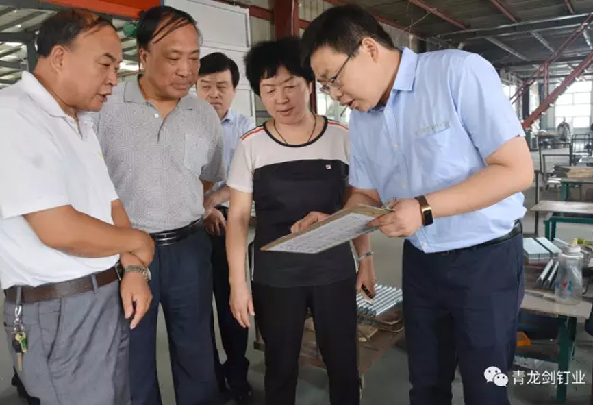 7月25日上午,隆堯縣工經(jīng)聯(lián)領(lǐng)導(dǎo)焦景芬、王占堂、胡濟(jì)南、張智一行蒞臨隆堯魏莊五金制品協(xié)會(huì)企業(yè)。為調(diào)研協(xié)會(huì)企業(yè)情況、指導(dǎo)協(xié)會(huì)工作蒞臨來訪。魏家莊鎮(zhèn)書記王秀峰、鎮(zhèn)長成英峰、協(xié)會(huì)會(huì)長張志山及協(xié)會(huì)工作人員陪同參與。青龍劍釘業(yè)總經(jīng)理、協(xié)會(huì)副秘書長馬群澤陪同參觀講解。