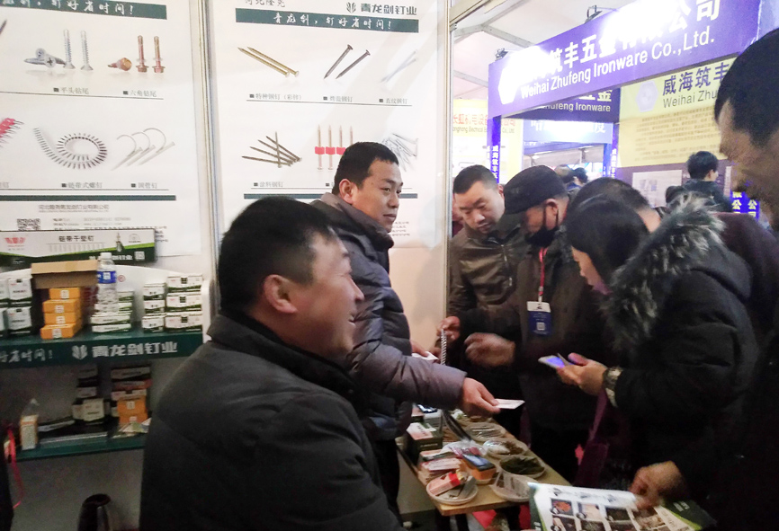 本次展會,青龍劍公司展示了裝修用釘、建筑用釘、木工用釘、螺絲釘?shù)柔旑惍a(chǎn)品,工作人員熱情的給每位新老客戶做了詳細(xì)講解。青龍劍以產(chǎn)品種類齊全,高效、優(yōu)質(zhì)的產(chǎn)品,良好的品牌口碑,讓很多客戶聚攏展臺,進(jìn)行詳細(xì)咨詢,并當(dāng)場訂單,此次展會超出了預(yù)期效果。